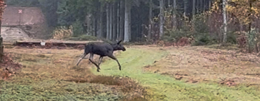 Söndag 26 oktober var kommittén för kommande gåsaskjutning kpist (lördag 6 december) ute för planering av tävlingen. Vid samlingen hände det att en älg tog vägen och vågade sig in tvärs över 300-metersbanan. Kände väl sig säkrare än att dra tvärs över älgbanan.