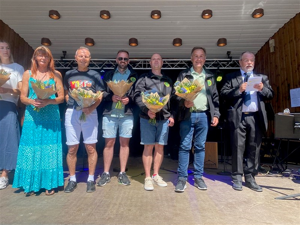 Henrik, Daniel, Inge o Arne: I Societetsparken: Henrik efter tre SM-guld lag varav två med Daniel och ett med Arne (ej närvarande, på semesterresa) samt Daniel och Inge efter individuella SM-guld 2022.